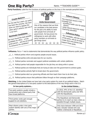 One Big Party Activity Pdf One Big Party Name A Vocabulary Match Each Key Term With Its Definition G 1 Political Party A Allowing A Political Course Hero
